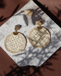 Artisan Handwoven Natural Statement Iraca Palm Earrings | Casa Bonita Sale